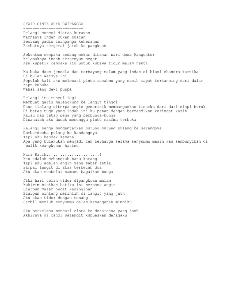 Syair Arya Dwipangga Tentang Cinta Pantun Cinta