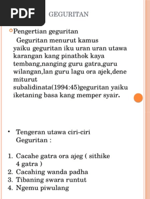 Geguritan tema katresnan. Orang yang membuat geguritan disebut dengan penggurit penggurit menggunakan sastra bahasa Jawa yang tinggi dan bermajas sehingga bisa membuat orang yang disindir dalam isi geguritan tidak merasa sedang disindir atau bahkan mereka bisa menembangkan geguritan tersebut. Fitri Nurwijayanti Warta sumebyar dadi gunjingan wulangan Basa Jawa bakal kajabel Owah-owahan Kurikulum 2006 tumuju Kurikulum 2013 kabiji bakal ngorbanake para siswa lan guru ing. Di tangan ibulah warna akhlak dan karakter anak berada.