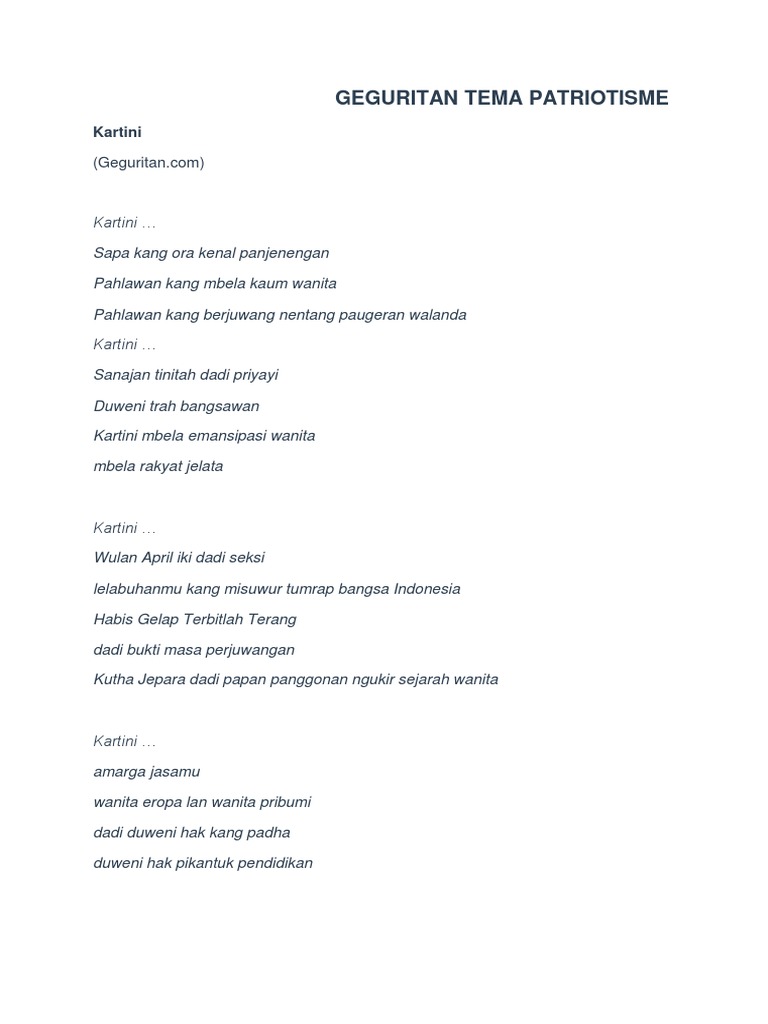 Contoh Geguritan Tema Guru By Fajar Setiyoko Posted on April 28 2016 November 24 2016. Reroncening trenyuh kabagyan kang medal saking panangis lan gumuyu trus rumesep ing telenging kalbu. Geguritan Tema Katresnan Panjang.